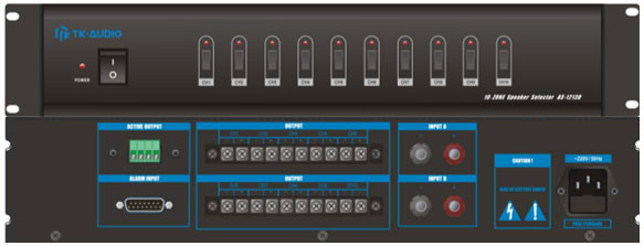 (1)       2路輸入(AB),10通道輸出,有強行插入功能切換通道功率音頻信號